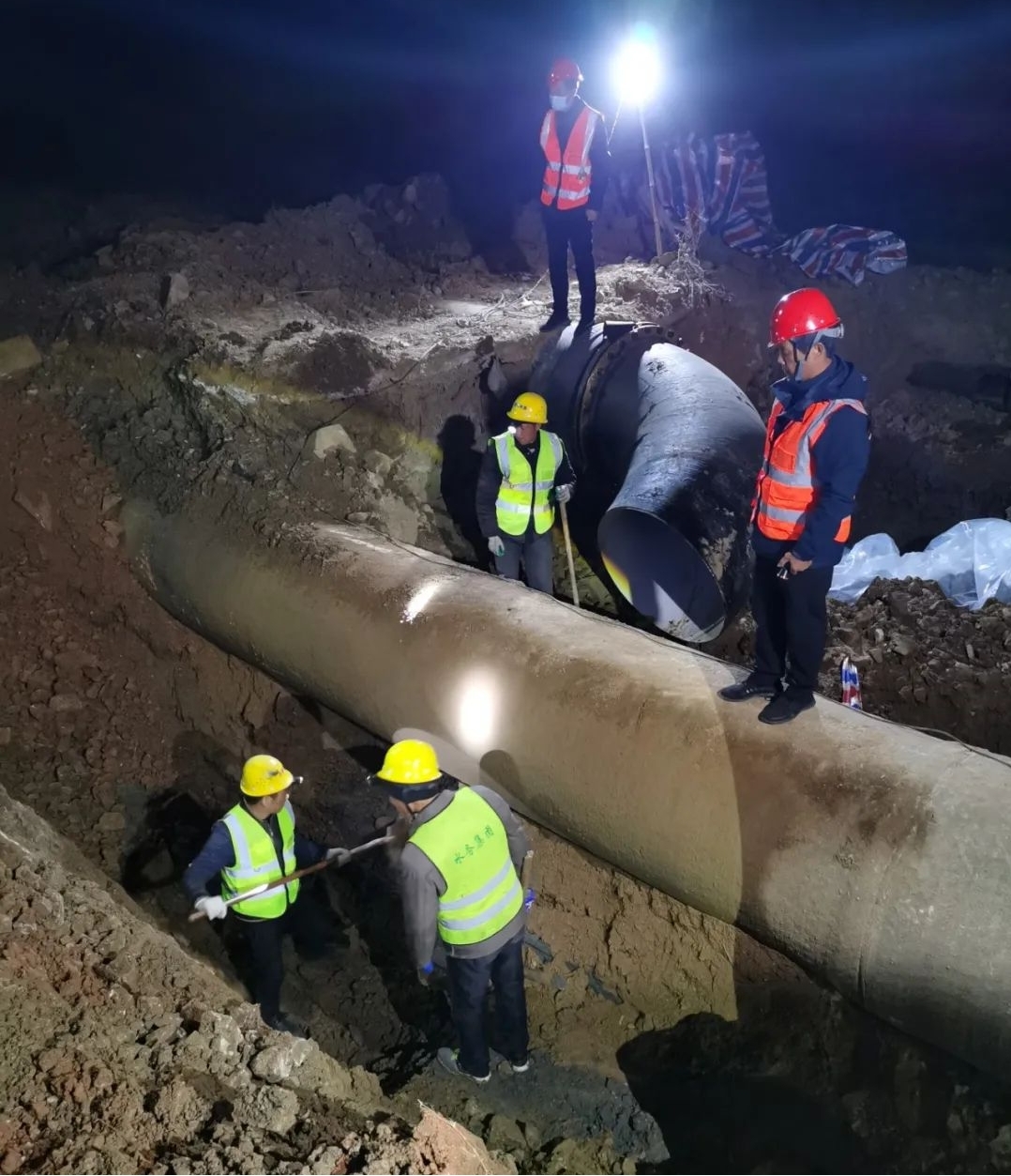 經(jīng)過24小時不間斷連續(xù)奮戰(zhàn),12月7日17時30分許,隨州城區(qū)?水河東岸生態(tài)環(huán)境提升工程PPP項目-DN1000供水主管道遷改工程新舊管道順利連接。