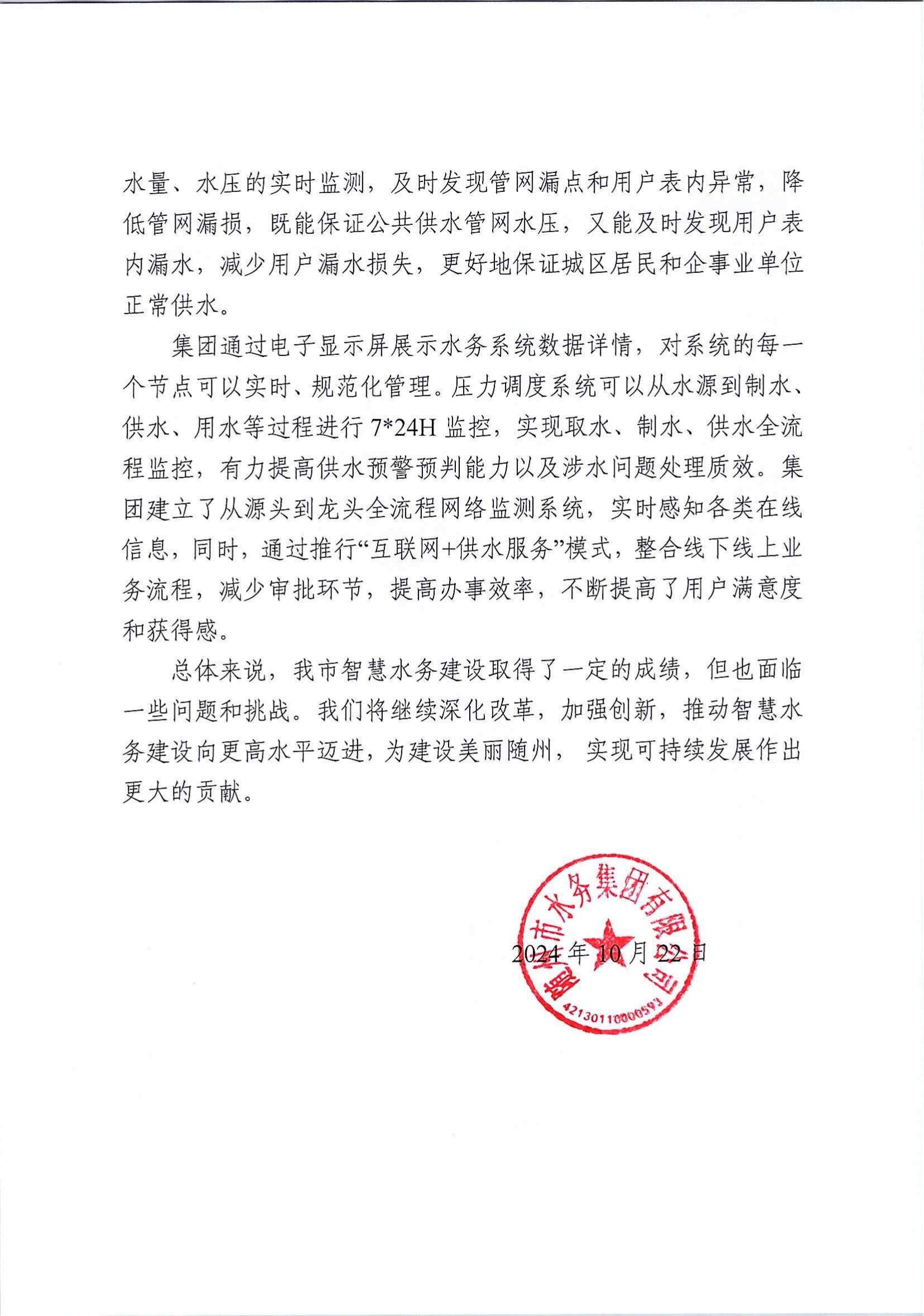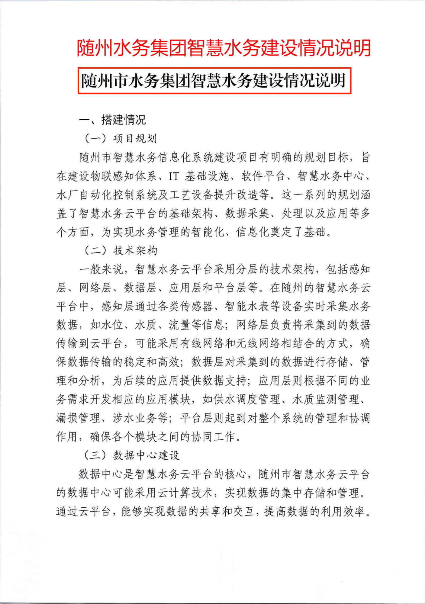 一、水務(wù)集團智慧水務(wù)情況說明