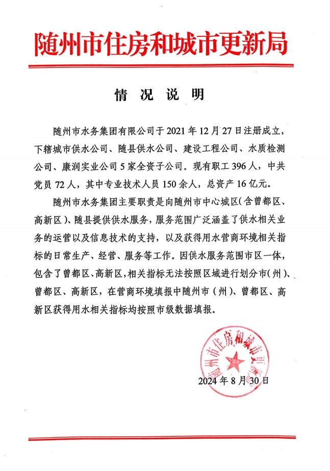 隨州市水務(wù)集團(tuán)基本情況說(shuō)明