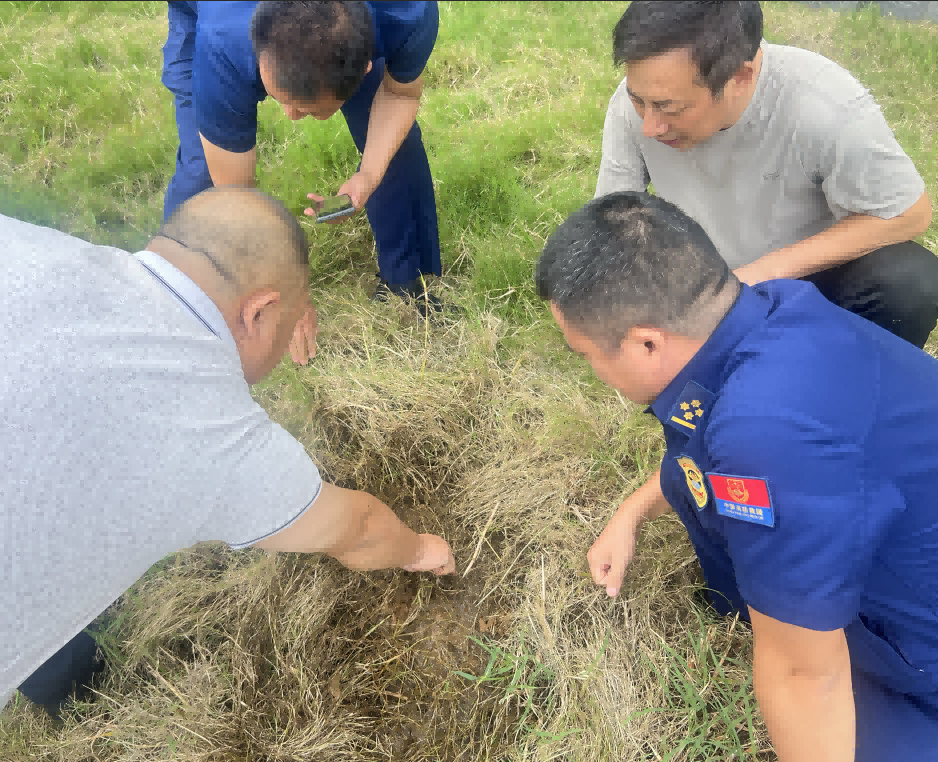 接到求助后,水務(wù)集團(tuán)高度重視,立即啟動(dòng)應(yīng)急響應(yīng)機(jī)制,迅速組建并派出由王海銳帶隊(duì)的專業(yè)排查團(tuán)隊(duì),奔赴現(xiàn)場開展排查工作。到達(dá)現(xiàn)場后,排查團(tuán)隊(duì)有條不紊地展開行動(dòng)。先是仔細(xì)觀測水表瞬時(shí)流量,掌握用水?dāng)?shù)據(jù)變化;隨后,協(xié)調(diào)消防救援支隊(duì)關(guān)閉泵房閥門,排除內(nèi)部用水對(duì)排查工作的干擾;最后,沿著供水管道,對(duì)每一段管線、每一個(gè)接口進(jìn)行細(xì)致檢查。經(jīng)過不懈努力,排查團(tuán)隊(duì)最終在草叢深處找到了隱蔽的漏水點(diǎn),成功揪出用水量異常的元兇”。